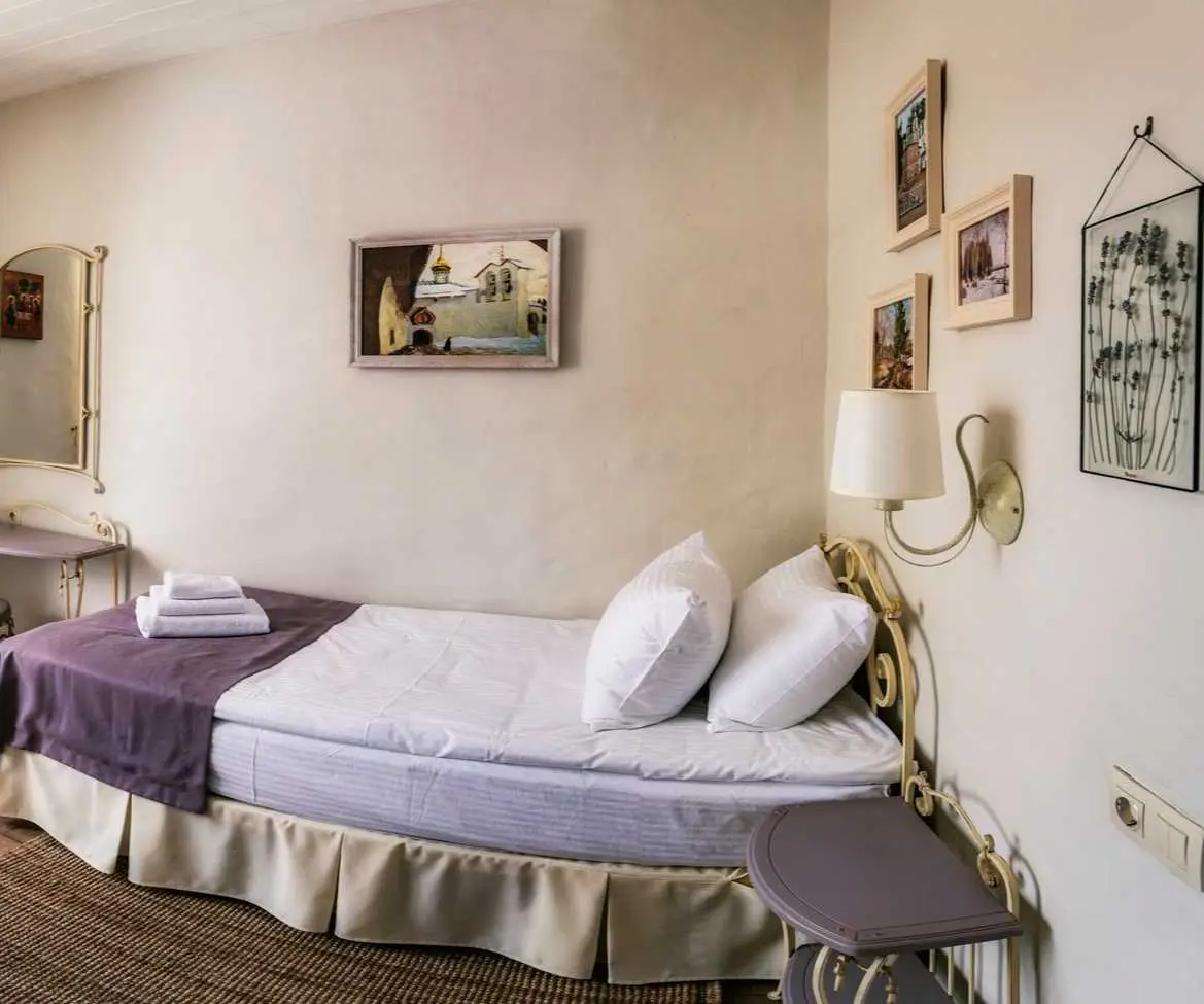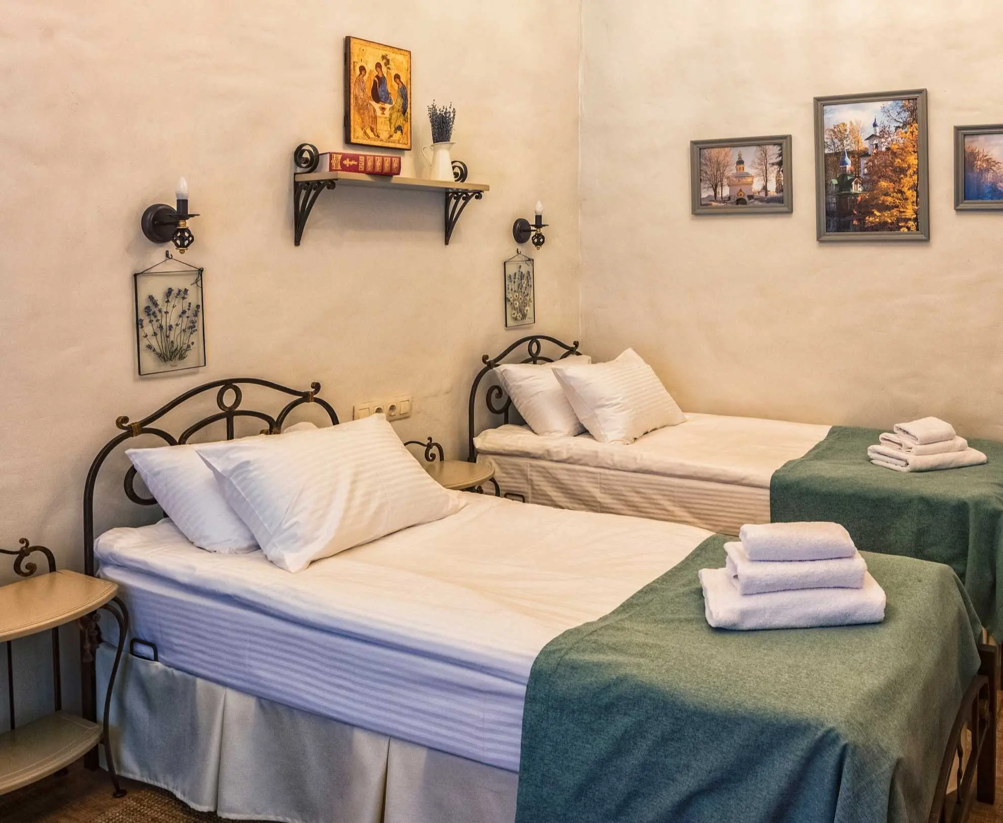 Монастырская гостиница расположена в шаговой доступности от Псково-Печерской обители. Вниманию гостей предлагаются номера различной категории. Светлая цветовая гамма, живые цветы, поразительные виды на монастырь создают ощущение легкости и умиротворения.